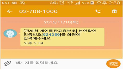 5. 휴대폰으로 전송된 인증번호를 확인하여 인증번호 입력창에 입력하고 ‘확인’ 버튼 선택